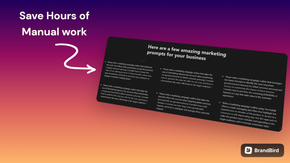 Instantly actionable: With these prompts at your fingertips, you can start creating compelling marketing content right away.